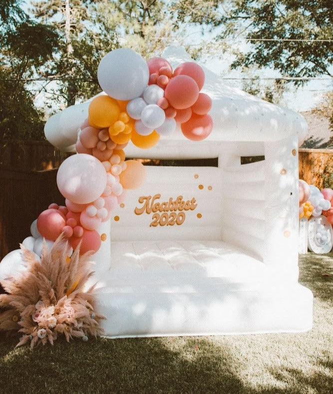 Bring the fun to your special day with the Boho Bounce House! This classic white castle is perfect for weddings, offering a classic look while providing shade with its covered top so your guests can enjoy ample shade.
